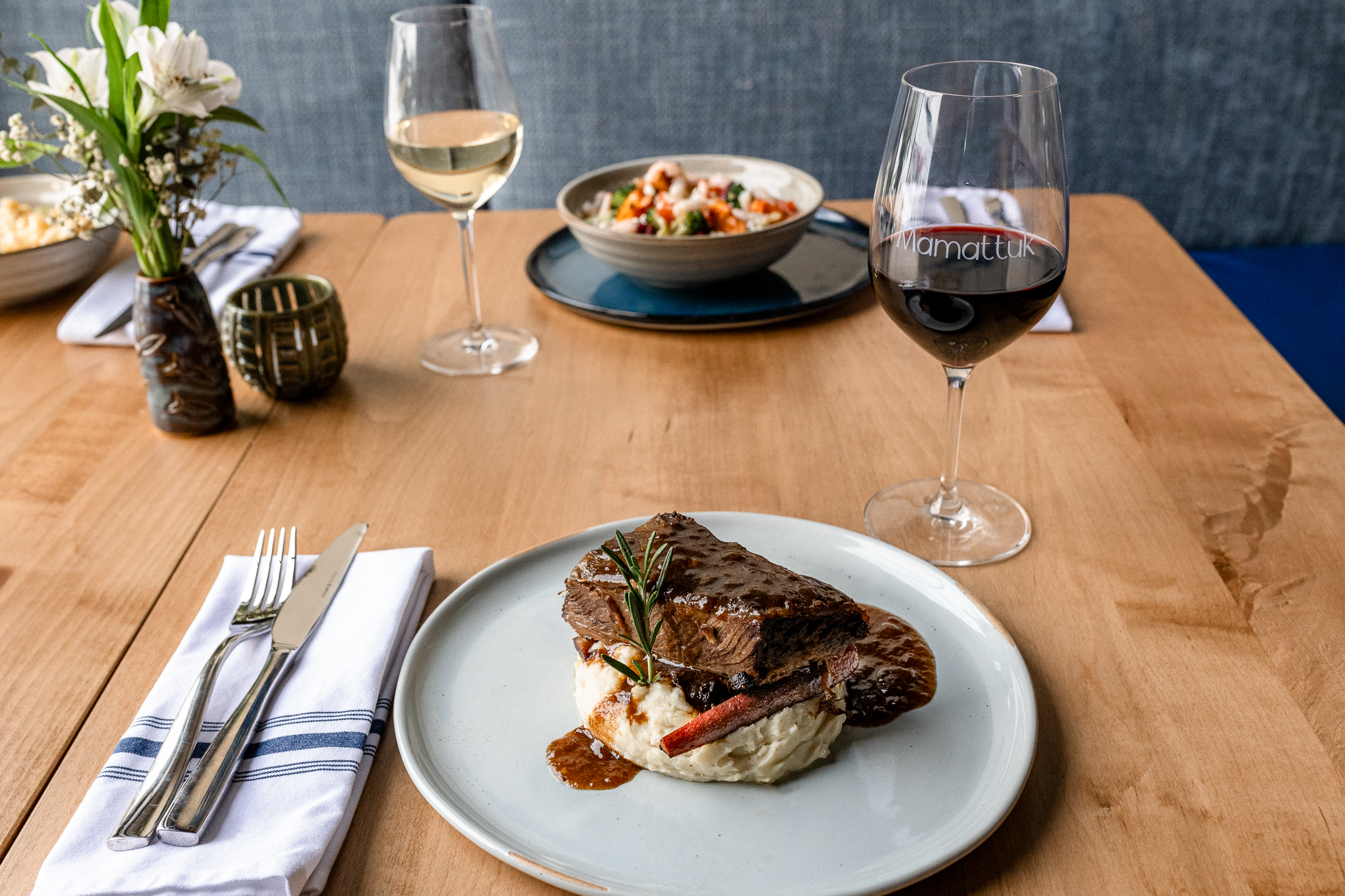 Mamattuk is a place that honours the steadfast warmth and beauty of our land. An elevated space, crafted for gatherings, large and small. Intimate dinners, celebrations with family and friends, and dining experiences not easily forgotten.